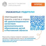 Опрос об удовлетворенности качеством дополнительного образования детей в Ростовской области |